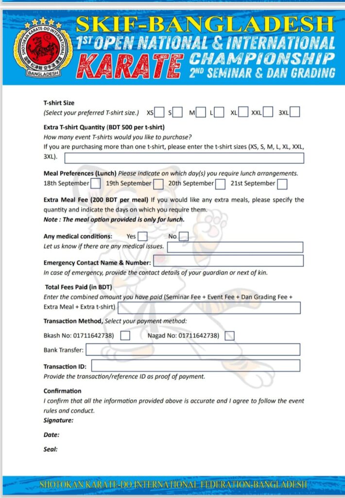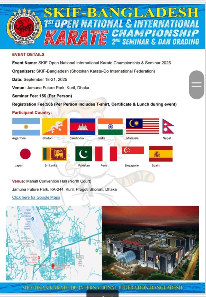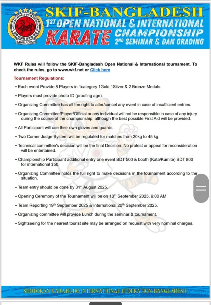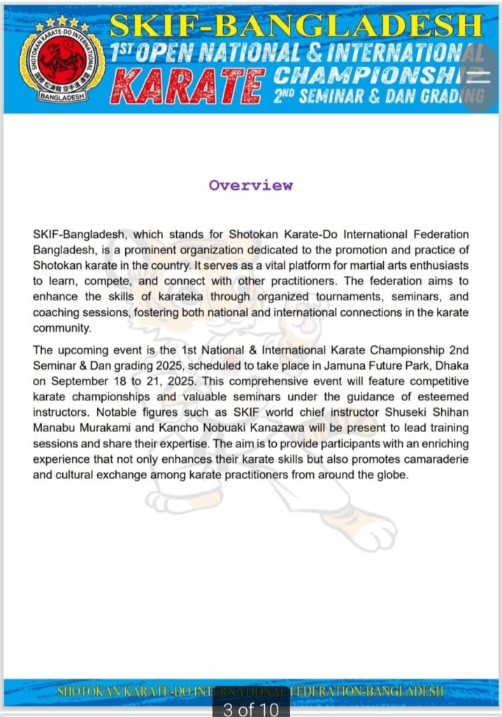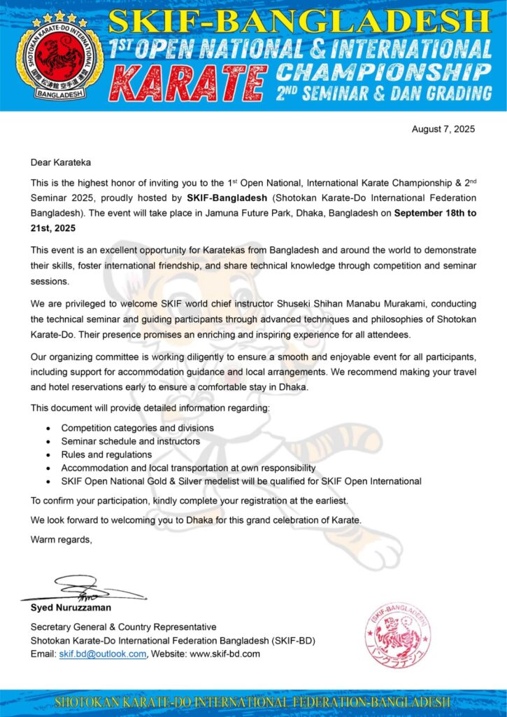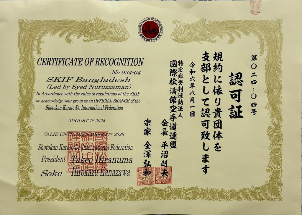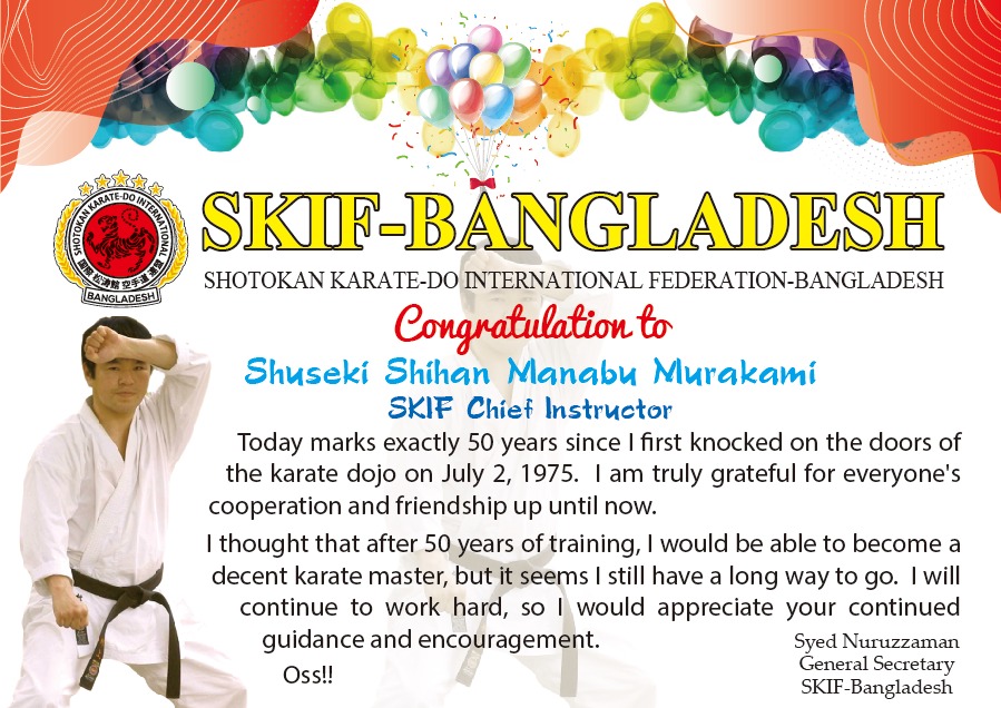 Strength of SKIF-Bangladesh SKIF-Bangladesh- Tournament Bulletin =Version 01 SKIF- Japan (Seminar 2025 Congratulation to Sayed Nuruzzaman who was SA games Gold Medallist of Bangladesh Achieved Gold Madel in the Veteran Event at the 2024 Commonwealth Karate Club Championship in Durban, South Africa.